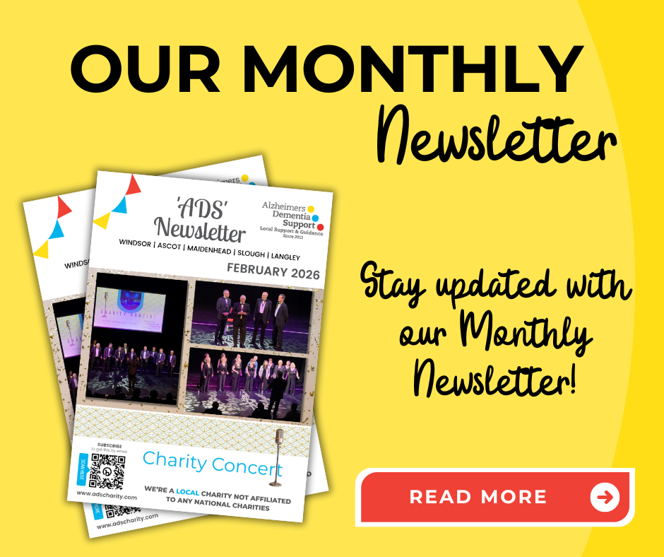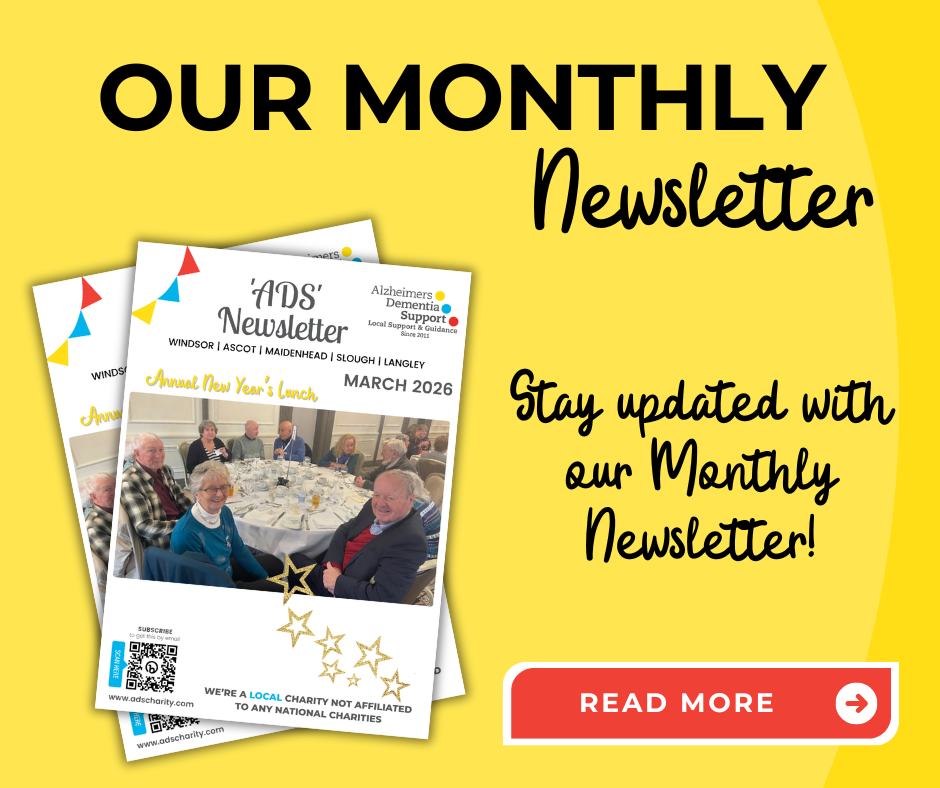 Discover more about our independent, local charity 'ADS' and explore our Services and Activities to see how we help People living with Dementia in Windsor, Maidenhead, Ascot, Slough, Langley and surrounding villages. Also, find out how you can support us, get information about Dementia, caregiving and other useful topics, join our community to stay updated with the latest news and events.
